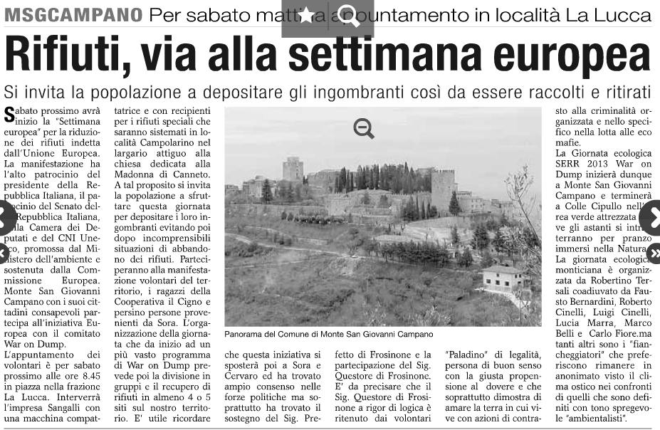 Il Circolo Lamasena plaude all’iniziativa per la raccolta straordinaria dei rifiuti ingombranti – programmata per sabato 16/11/13 dalle ore 8,45 presso la Piazza Padre Pio – La Lucca, Monte S. G. C.