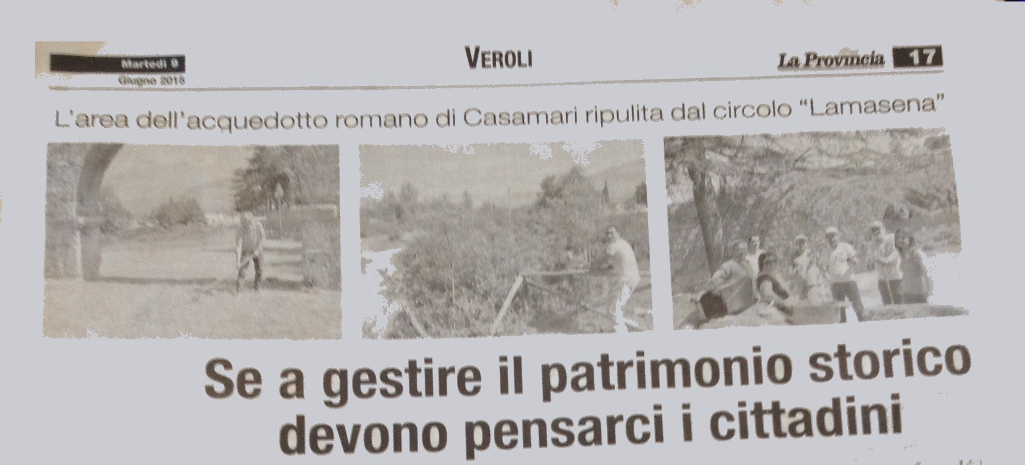 Il circolo Lamasena si sente in dovere di replicare alla nota, riportata nell’articolo apparso sul quotidiano La Provincia, il 9 giugno 2015, dal titolo: ”Se a gestire il patrimonio storico devono pensarci i cittadini”.